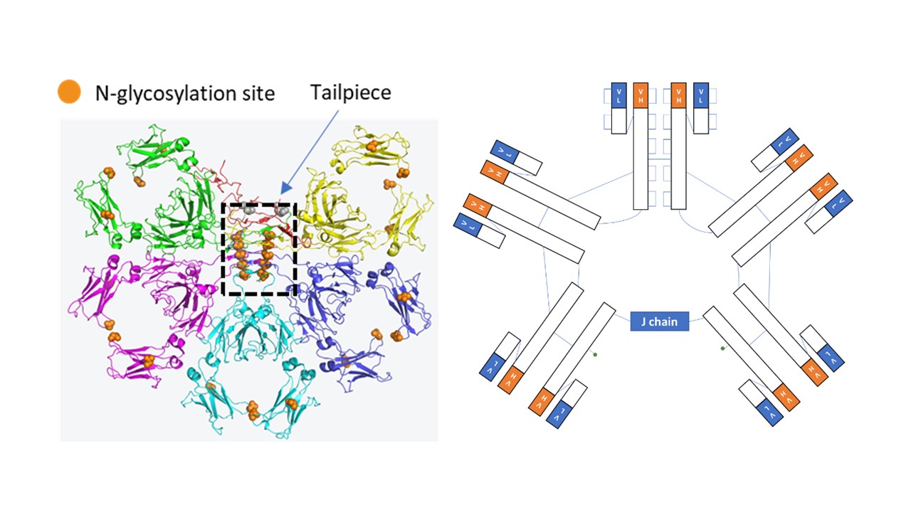 免疫球蛋白M(IgM)是人类免疫系统自然产生的抗体,是由一个有J链组成的五聚体。与传统的IgG抗体相比,IgM有一些独特的特征:IgM有10个结合位点(IgG抗体只有2个),因此IgM具有更强的抗原结合能力。《Nature》曾报道,鼻腔给药IgM可防护SARS-CoV-2多个病毒变种的入侵,其最高中和效力是IgG的230多倍。